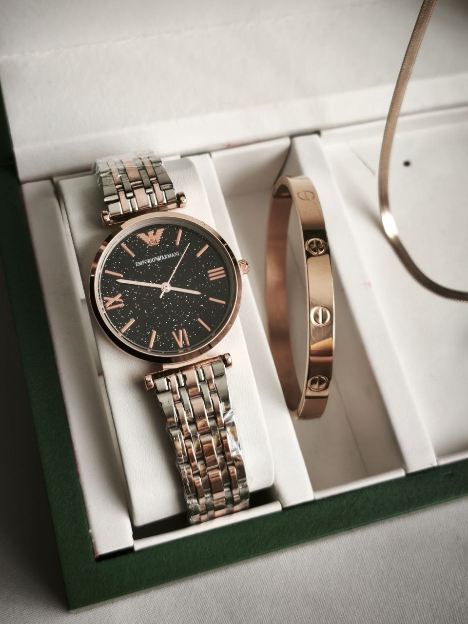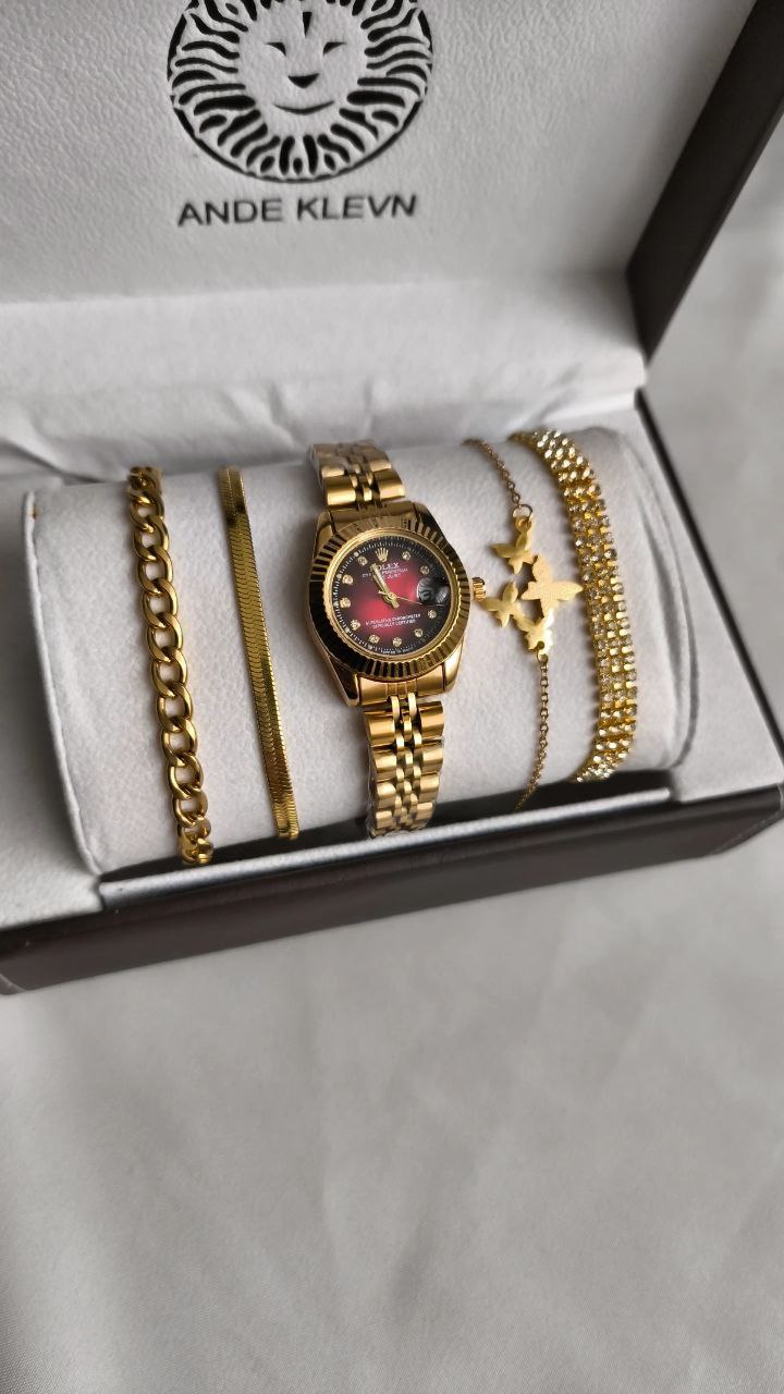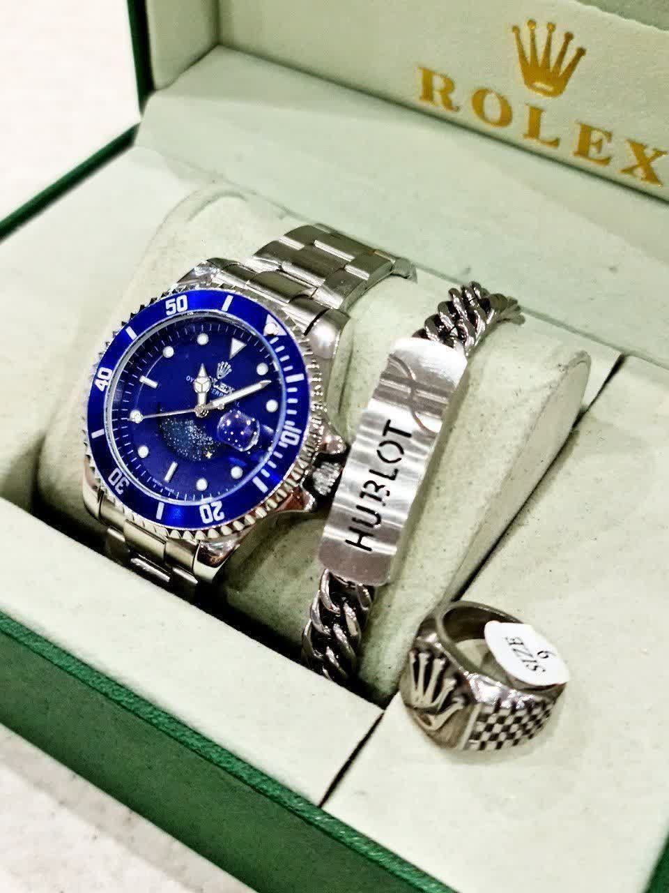 پک ویژه روز ولنتاین و روز مادر 🍁ساعت رولکس 🍁دستبند بنگل 🍁همراه جاکلیدی شیشه ای چراغدار