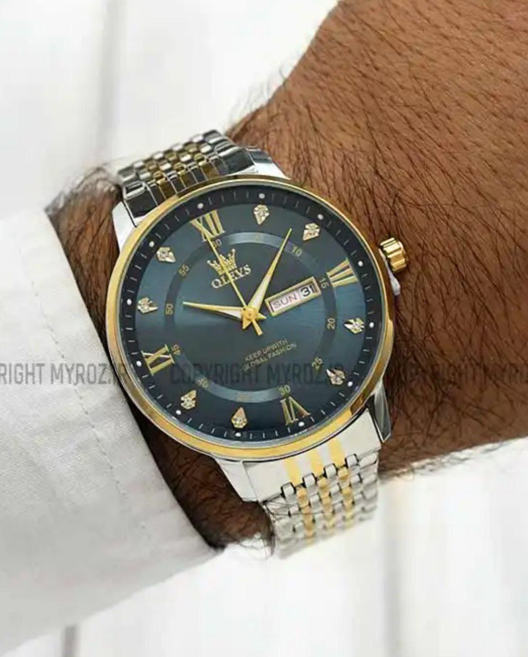 ساعت مچی مردانه olevs 🔥Sold well ORIGINAL ست الوز ارجینال موتور کوارتز ضد آب در حد دست شستن طرح الماس دارای روز شمار ایام هفته صفحه شب نما بند وستاری قفل پروانه ای استیل مخفی شیشه سافایر ضدخش