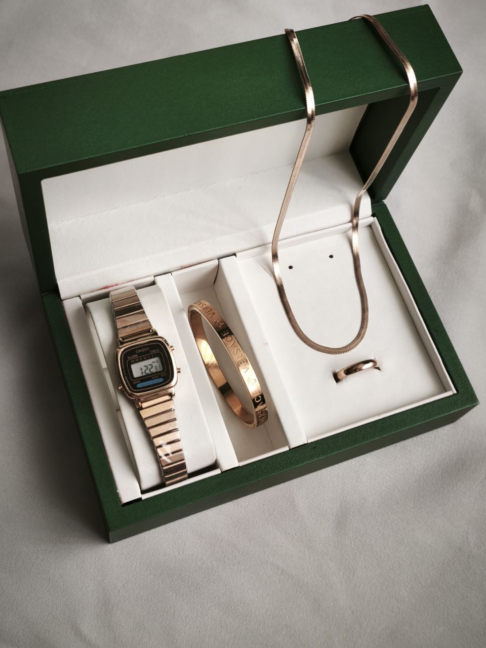 ست ساعت زنانه کاسیو همراه دستبند و گردنبند و انگشتر