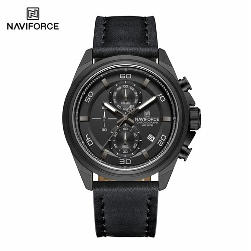 ساعت مردانه نوویفورس brand naviforce کرنو گراف اورجینال قطر 45 میلی متر رنگ ثاب قاب استیل بند چرم شیشه ضدخش