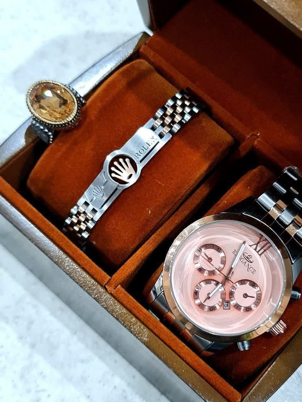 ست ساعت و دستبند و انگشتر شیک مردانه