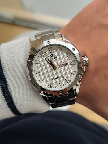 ساعت مردانه مارک SVESTON 185020007036 دو تاریخه ماهانه و روزانه ✅موتور ژاپن ✅رنگ ثابت هک مارک روی قفل