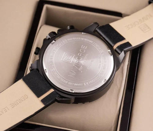 ساعت مردانه نوویفورس brand naviforce کرنو گراف اورجینال قطر 45 میلی متر رنگ ثاب قاب استیل بند چرم شیشه ضدخش