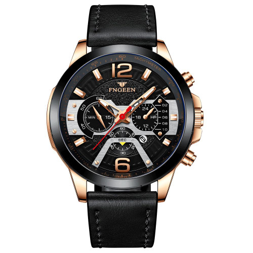 ساعت مچی مردانه ☑️FNGEEN subset of BIN BOND ⌚️برند شرکتی مردونه مقاوم دربرابر آب دارای روز شمار طرح کرنوگراف بند چرمی شب نما رنگ ثابت قفل کمربندی موتور کوارتز
